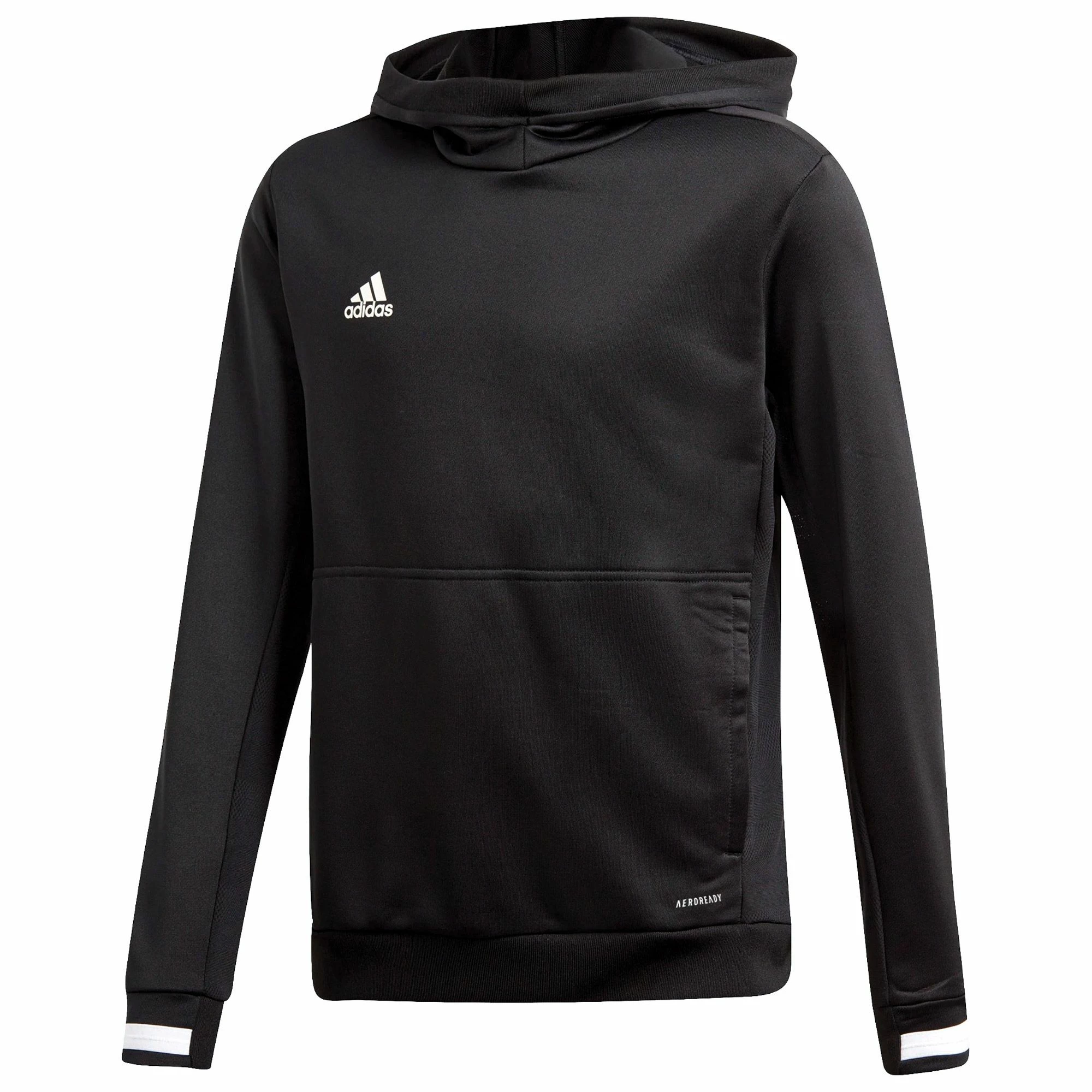Das Adidas T19 Hoodie für Kinder ist ein atmungsaktives, schnelltrocknendes Hoodie das man zum Warming-Up tragen kann.